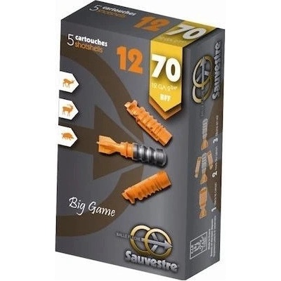 Balení 5 ks prémiového brokového střeliva od francouzského výrobce Sauvestre. Každý náboj obsahuje podkaliberní jednotnou střelu BFF (Balle Fleche Flexible) s olověným jádrem a...