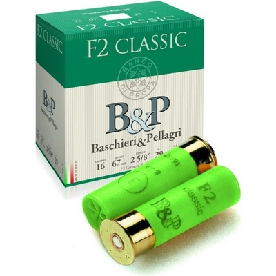 Brokové náboje B&P F2 Classic 16/67 29g brok 3,1mm Lovecký brokový náboj B&P ráže 16/67, náplň 29 gramů broků o průměru 3,1mm Ráže: 16/67 Brok: 3,1 mm / 29 g Počet ks v...