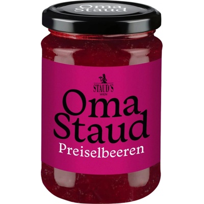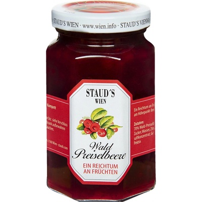 Brusinková ovocná pomazánka v osvědčené kvalitě STAUD'S vysoký obsah ovoce s koncentrátem citronové šťávy ideální na snídaňový chléb