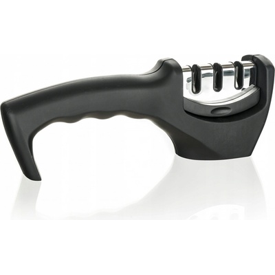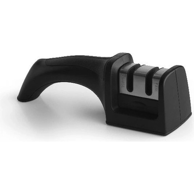 Manuální brousek na nože- dva otvory na broušení- oboustranný pohyb- z nerezové oceli- protiskluzový podstavec- jednoduché použití pomocí jedné ruky