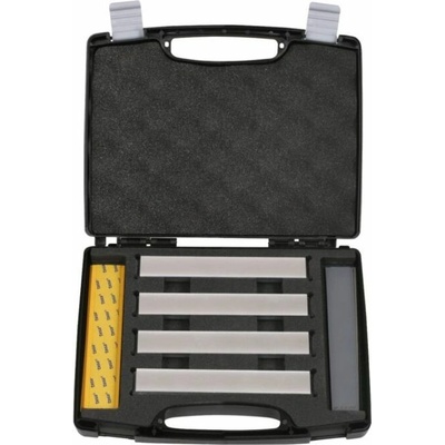 Dokončení ostří lapovacími papíry s SiC brusivem. Kufřík je vybaven pěnovou výstelkou pro přehlednost a ochranu jednotlivých dílů. 2 páry prázdných duralových kamenů 16 ks...