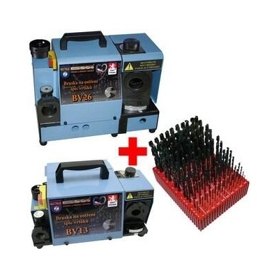 Bruska na spirálové pravotočivé vrtáky vyrobené z rychlořezných a cobaltových ocelí + Bruska na vrtáky BV13 rozsah 2-13mm + Sada vrtáků ČSN 221121RNHSS 130-dílná v plastovém...