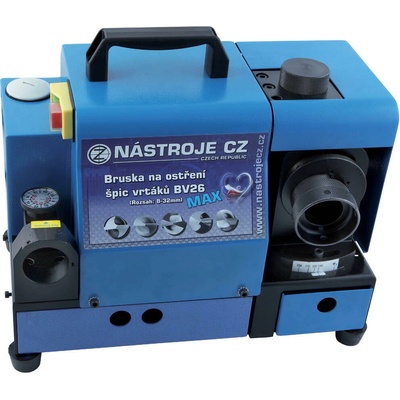 Bruska na spirálové pravotočivé vrtáky vyrobené z rychlořezných a cobaltových ocelí v rozsahu průměrů 11-26mm. Rozsah nastavení úhlu špice je 90-140° + Bruska na vrtáky BV13...