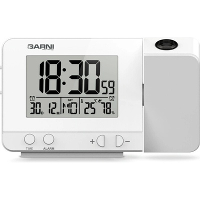 Budík digitální projekční GARNI 140 čas a vnitřní teplota Digitální budík s projekcí času a vnitřní teploty s LCD displejem. Hlavní vlastnosti • Budík s 2 budícími časy + funkce opakovaného buzení (Snooze).• Čas řízený rádiovým signálem DCF-77.• Měření vnitřní...