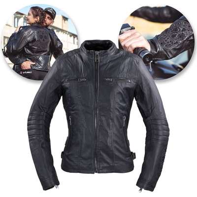 Dámské kožené moto bundy W-Tec Stylová bunda s dekorativními nášivkami ve stylu "santa muerte", měkká a poddajná kůže, velké množství kapes, robustní zipy.
