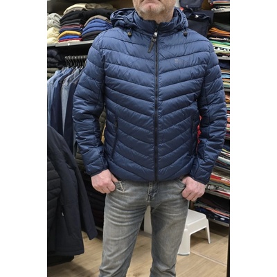 Moderní, lehká prošívaná pánská zimní bunda Bugatti z nylonové tkaniny se stojáčkem, dvěma náprsními kapsami na zip a dvěma bočními kapsami. Elastické manžety na bočním lemu a...