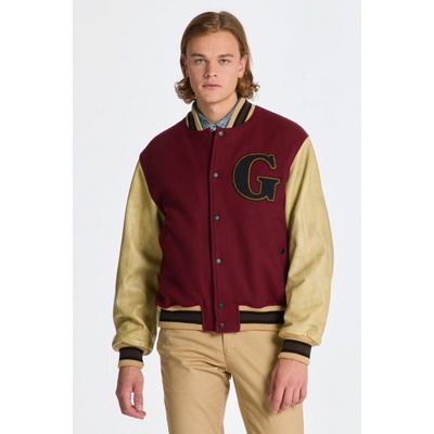 Pánská univerzitní bunda ikonického bomber střihu s charakteristickými náplety kolem krku, na rukávech i v pase. Zapínání na druky, sportovní branding na hrudi, dvě boční šikmé...