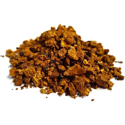 Sušené, řezané plodnice dřevokazné houby rezavce šikmého (Inonotus obliquus). Známější název je čaga. Způsob použití: odvar