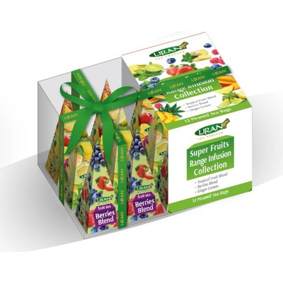 Ovocnobylinné čaje jednotlivě balené v pyramidách v dárkovém balení.
