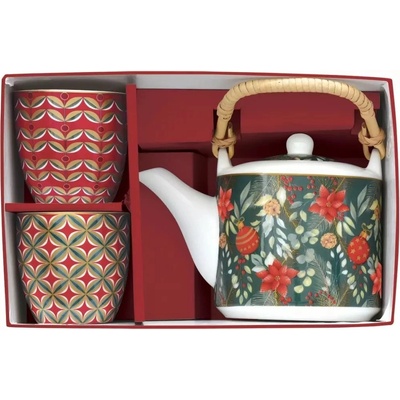 Easy Life Christmas joy Čajová sada konvičky se sítkem a dvou hrnků 600 ml + 2x160