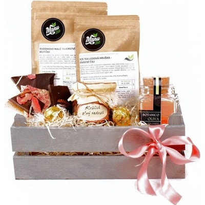 Dárková čajová bedýnka - 43689 Sypaný čaj, lámaná čokoláda k tomu zapálená vonná svíčka. Tak to Vás přesně čeká po nákupu této bedýnky. Bedýnka potěší jak ženy tak...