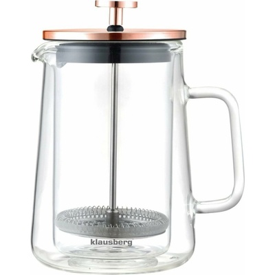 Skleněný kávovar a čajovar typu french press o objemu 600 ml od KLAUSBERG Vlastnosti: Dvojité sklo teplotu konvice. Vysoce kvalitní filtrační materiál vyrobený z nerezové oceli...