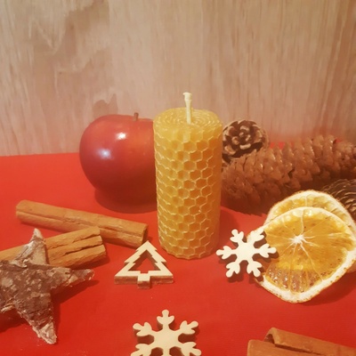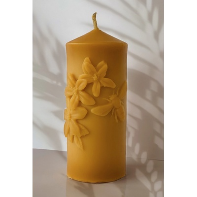 Svíčka z pravého včelího vosku přímo od včelaře :) Válcovitá svíčka zblízka zaujme siluetou včely snadno provoní váš byt příjemnou medovou vůní. Skvěle se hodí na přírodní...