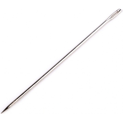 Dlouhá čalounická jehla má velké ouško a tupou špičku. Používá se k sešívání hrubých materiálů, pytlů. Rozměry ouška jsou cca 1,3 x 9 mm. - Délka: 15 cm - Průměr jehly: 2,8...