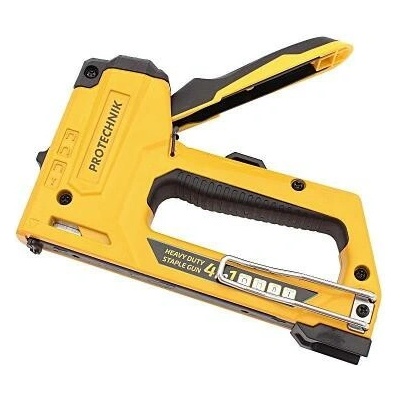 Kontaktní pojistka, zásobník se spodním plněním, bez zpětného rázu, tlumič hluku. Oblasti použití:Čalounění, dekorace, řemeslná výroba, potahování stěn, plakáty, textilie,...