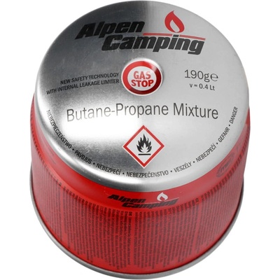 Alpen Camping STOP GAS kartuše 190g Plynové kartuše Alpen Camping o hmotnosti 190 g, jsou všestranným řešením pro milovníky outdoorových aktivit, jako je kempování, trekování, turistika nebo pikniky. Jejich praktická velikost a výkon, je činí nezbytným zdrojem paliva...