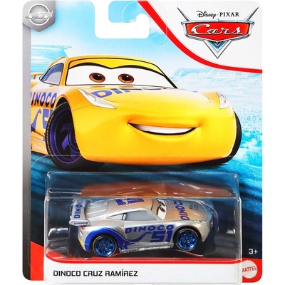 Mattel Cars 3 Dinoco Cruz Ramirez auto | žluté Mattel Cars 3 auta. Cruz Ramirez ve své jasné žluté barvě a nápisy Dinoco patří do kolekce 12 cm autíček zpracovaných v měřítku 1:46.