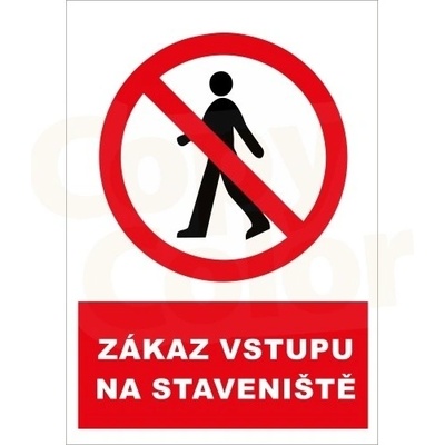 Cedule, tabulka - Komatex, -- Zákazová tabulka -- Zákazový symbol vyjadřující - Zákaz vstupu na staveniště -- Zákaz vstupu na staveniště -- Kreslený symbol doplněný textem