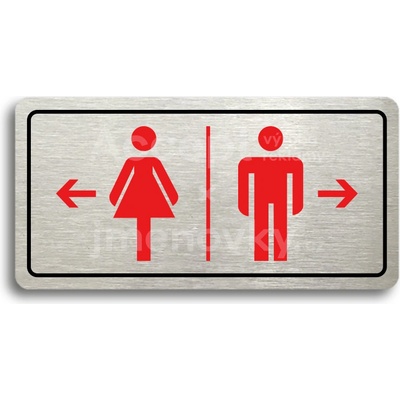 Piktogram wc ženy vlevo, wc muži vpravo je vyroben technologií tepelně chemického tisku na hliníkovou tabulku. Díky speciálnímu chemickému složení je výsledný tisk odolný proti...
