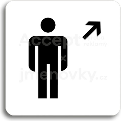 Piktogram WC muži vpravo nahoru je vyroben technologií tepelně chemického tisku na hliníkovou tabulku. Díky speciálnímu chemickému složení je výsledný tisk odolný proti...