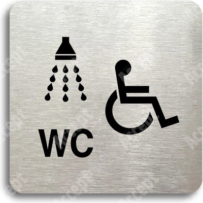 Piktogram sprcha, WC je vyroben technologií tepelně chemického tisku na hliníkovou tabulku. Díky speciálnímu chemickému složení je výsledný tisk odolný proti poškrábání....