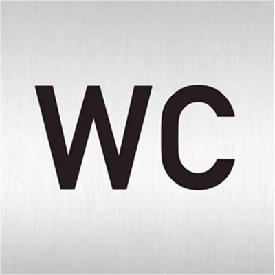 Piktogram WC vlevo dolů je vyroben technologií tepelně chemického tisku na hliníkovou tabulku. Díky speciálnímu chemickému složení je výsledný tisk odolný proti poškrábání....