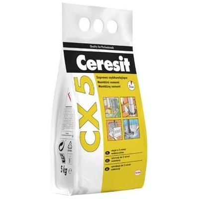 Montážní cement CX 5 rychloschnoucí 5 kg Ceresit pytel Rychletvrdnoucí cement CX5 Ceresit k ukotvení předmětů a utěsňování lokálních průsaků vody. Pro rychlé ukotvení předmětů...