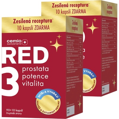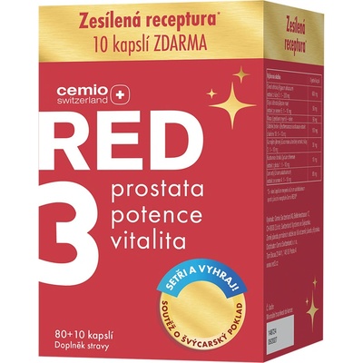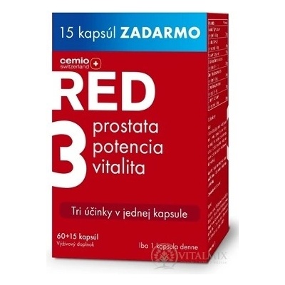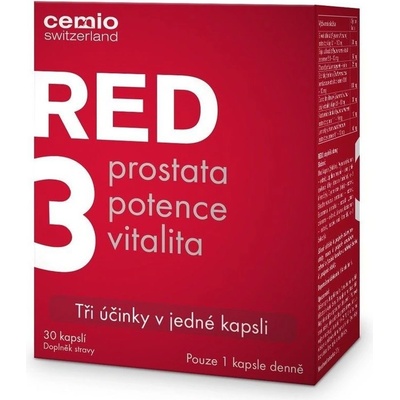 Cemio RED3 je doplněk stravy pro muže s extrakty z rostlin, které podporují normální funkci prostaty, močových cest a močového měchýře, ale také potenci a fyzickou i psychickou kondici.