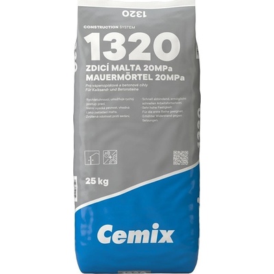 Cemix 1320 malta zdicí. Speciální cementová rychletuhnoucí malta s velmi vysokou pevností pro zdění konstrukcí z vápenopískových a betonových bloků. Malta se vyznačuje zvýšenou...