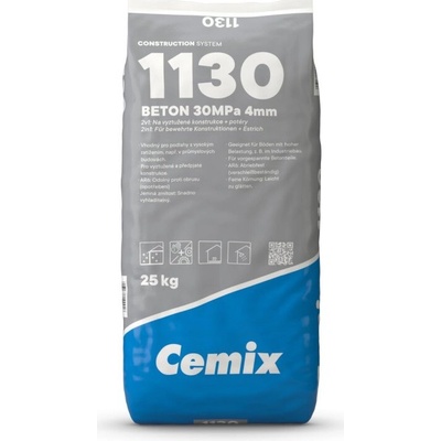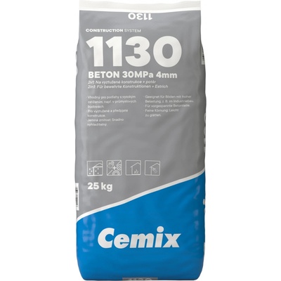 Cemix 1130 beton C25/30 Mrazuvzdorný beton vysokopevnostní třídy C 25/30. Vhodný pro běžné betonářské práce včetně stavebních konstrukcí vyžadujících použití armovací výztuže...