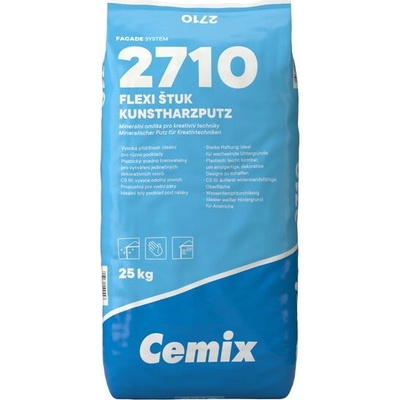 Cemix 2710 štuk FLEXI s vláknem. Flexibilní s vláknem: Redukující trhliny. Zrno 0,7mm: jednoduše vyhladitelná. Plastický: Snadno tvarovatelný mnoha způsoby pro vytváření...