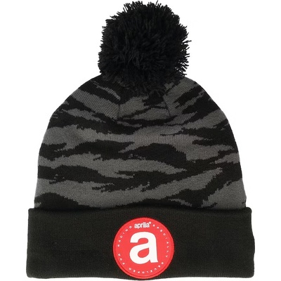 Stylová zimní čepice Aprilia s bambulí. Černá zimní čepice Aprilia Racing s vyšitými logy. Zahřeje, pohodlná na nošení.