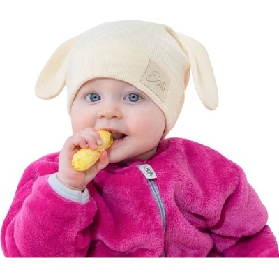 Esito Jarní čepice s ušima Color Cream vel. 36 ---Pružný žebrovaný materiál Roztomilá ouška Bavlna s trochou elastanu