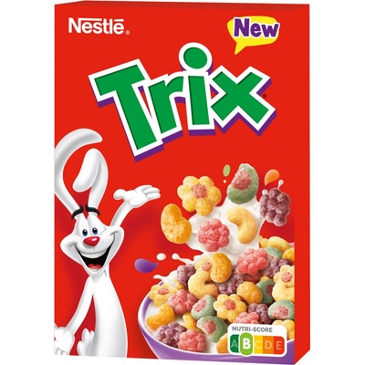 Nestlé Trix 300 g Snídaňové cereálie s ovocnou příchutí, různých tvarů, s vitamíny a minerálními látkami. Extrudovaný výrobek. SLOŽENÍ celozrnná kukuřičná mouka 39,9 %,...