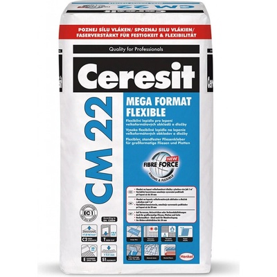 Lepicí malta Ceresit CM 22 je určena k lepení velkoformátové gresové dlažby, obkladů a dlažby z keramiky, jemné kameniny, desek z betonu a kamene (mimo mramoru) na stabilních i kritických podkladech.