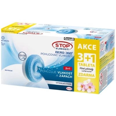 Náhradní tablety Ceresit STOP VLHKOSTI AERO 360° Luční kvítí Absorpční náhradní tablety Ceresit do pohlcovače vlhkosti AERO 360° obsahují příjemnou vůní lučního kvítí se...