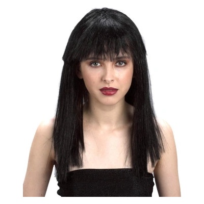Paruka dlouhá s ofinou - černá Karnevalová paruka nejenom ke kostýmu čarodějnice. Paruka má dlouhé černé vlasy s ofinou. Perfektní doplněk... S parukou zacházejte opatrně....