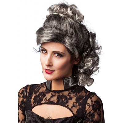Luxusní dámská gotická barokní paruka v černé barvě Tuto dámskou objemnou barokní paruku využijete například ke kostýmu světově známé arcivévodkyně Marie Antoinetty, nebo k...