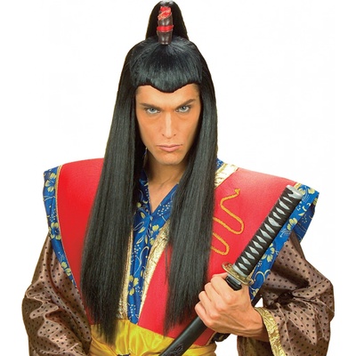 Karnevalová paruka Samuraj, ninja, černá. Barva: černá Určeno pro: pánská Typ paruky: dlouhá s culíkem Materiál: 100% polyester