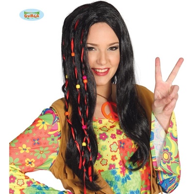 Černá hippies paruka je dlouhá paruka s typickými vpletenými korálky. Dlouhá černá paruka s vpletenými barevnými korálky je velmi originální a slušivá Paruka má dlouhé černé...