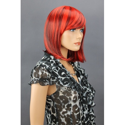Foto pod textem Dámská paruka z nejkvalitnějšího umělého vlákna HT barva černo červená krátká Kvalita materiálu 99% imitace lidského vlasu barvou, vzhledovou formou. Použitý...