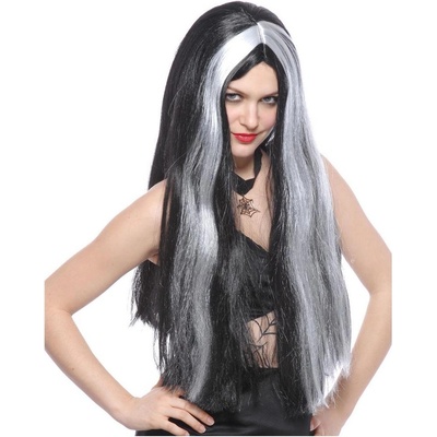 Černá paruka s bílými pramínky, ideální ke kostýmu čarodějnice. Technické parametry Barva Černá Cílová skupina Holky Téma Karneval Velikost balení 30 x 39 x 15 cm Hmotnost...
