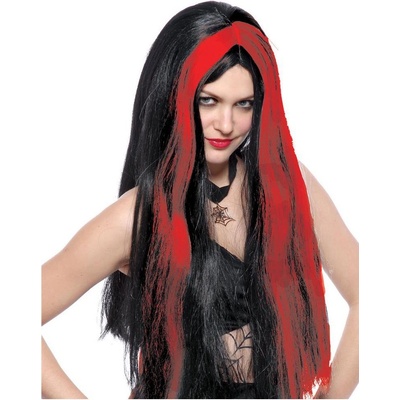 Černá paruka s červenými pramínky, ideální ke kostýmu čarodějnice. Technické parametry Barva Černá Cílová skupina Holky Téma Karneval Velikost balení 30 x 39 x 15...