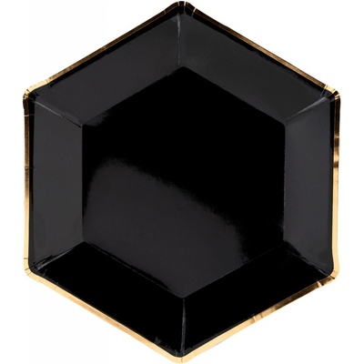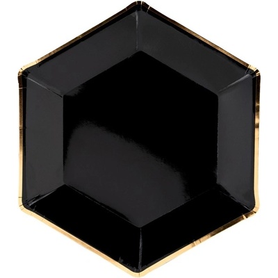 Papírový talíř na jednorázové použití v černé barvě se zlatým okrajem osmistěn. Průměr : 23 cm Balení : 6 ks