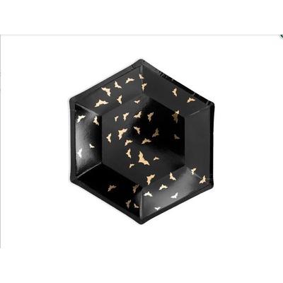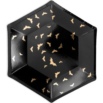 Papírové talíře netopýr, černé se zlatým vzorem, průměr cca 20 cm.