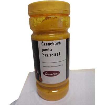 Česneková pasta (1kg) - 50% soli Složení: 50% extrahovaný česnek, 50% jedlé soli, pitná voda Dávkování: 5-10g na 1kg díla Balení: v plastové znovuuzavíratelném kyblíku Použití: jako náhrada čerstvého česneku, všestranné využití, hodí se na langoše, pod masa, do...