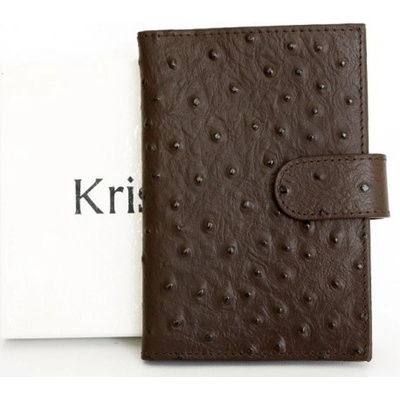 Hnědé pouzdro na cestovní pas Kristy.X z hovězí kůže s úpravou jako pštrosí kůže . Rozměr: 11 x 14,8 cm.