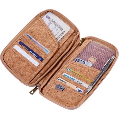 Pouzdro na cestovní doklady, s ochrannou fólií proti čtení (pro RFID čipy), zip, 12 vnitřních přihrádek, 50% polyester/50% korek, poutko na pero, korek/polyester, matná,...