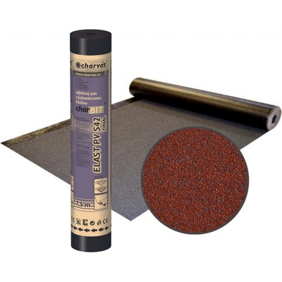 Asfaltový pás charBIT ELAST PV S42 FINAL červený mix 1 x 7,5 m 4,5 mm Natavitelný asfaltový pás z modifikovaného asfaltu SBS jsou pásy s nenasákavou nosnou vložkou z...