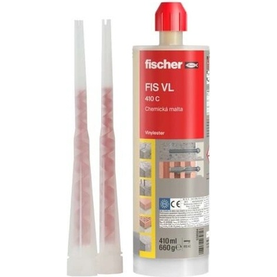 Fischer VL 410 C (538584) Chemická injektážní malta, dodávana včetně dvou míchacích trysek, je na bázi hybridní vinylesterové pryskyřice bez obsahu styrenu. Tato chemická kotva...
